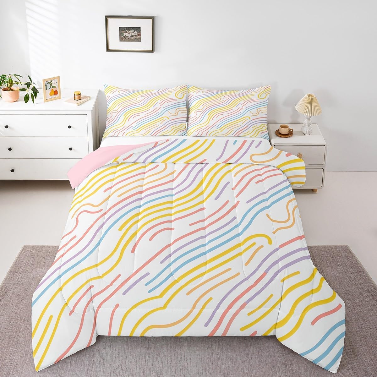 There are more options with various styles of comforter set waiting for youSize Information:1 Toddler size comforter 42" X 58" and 1 pillow sham 30" X 20".1 Twin size comforter 68" X 90" and 1 pillow sham 30" X 20".1 Full size comforter 79" X 91" and 2 pillow sham 30" X 20".1 Queen size comforter 90" X 90" and 2 pillow shams 30" X 20"1 King size comforter 104" X 90" and 2 pillow shams 36" X 20"UsefulMakeover your bedrooms all season with our comforter sets; good item for your room, girls boys youth room, master bedroom. Practical to use for being polyester which is ultra soft and breathableUnique design:Vivid colors with digital printing; these unique designs match well with various color palettes of your rugs, curtains, headboard, furniture, and all other decor accessoriesPersonalized:As manufacturers of digital printed home textiles, we follow current trends and bring you new home fashionBest blessings to your family or friend, relative or boyfriend girlfriend, or to yourself, the item should be interesting and authenticNote:The Comforter and pillow shams are printed on the front side only, the back of them are white colored